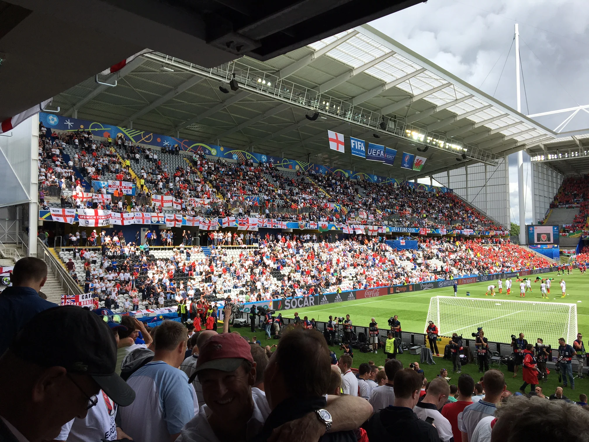 These situations generally work out ok though, and as we found a bar on the edge of a deserted square half an hour from Lens just before midday all was well with the world. A crowd attracts a crowd as they say, and we were soon enjoying a few beers with England and Wales fans alike. Shock horror...all very friendly and lots of laughs. And not a riot shield in sight...
