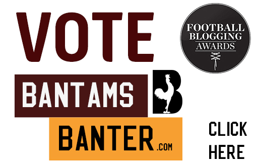 Thanks to you Bantams Banter has been shortlisted for the 'Best Football Podcast' awards at this years Football Blogging Awards. To win, the show needs your votes! Find how how to vote by clicking below.