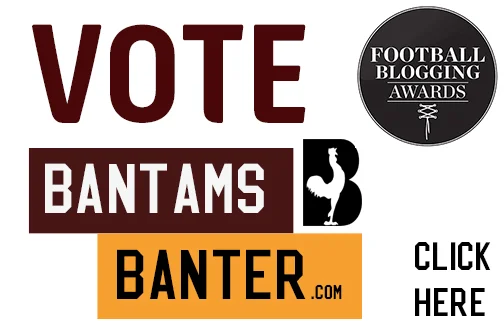 Thanks to you Bantams Banter has been shortlisted for the 'Best Football Podcast' awards at this years Football Blogging Awards. To win, the show needs your votes! Find how how to vote by clicking below.